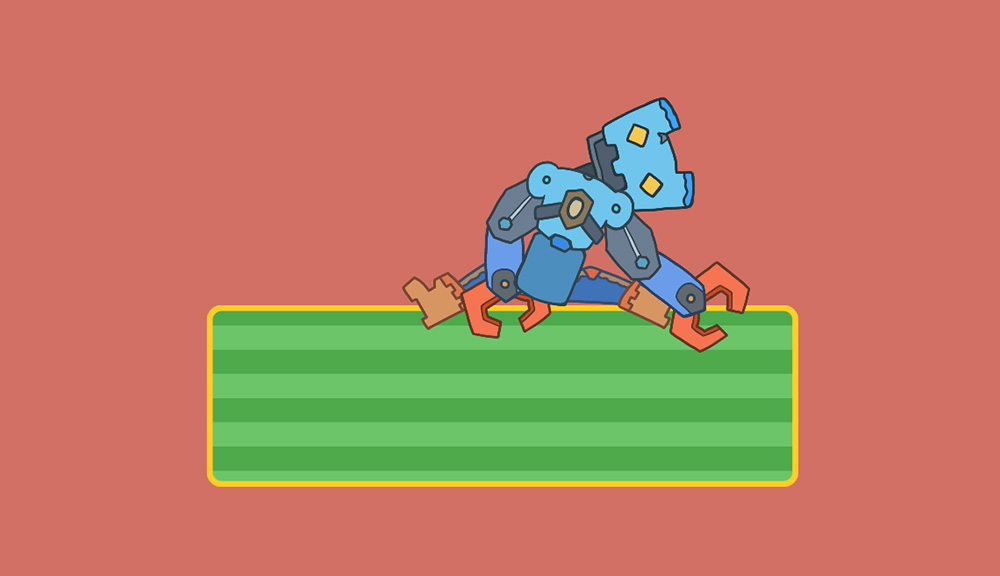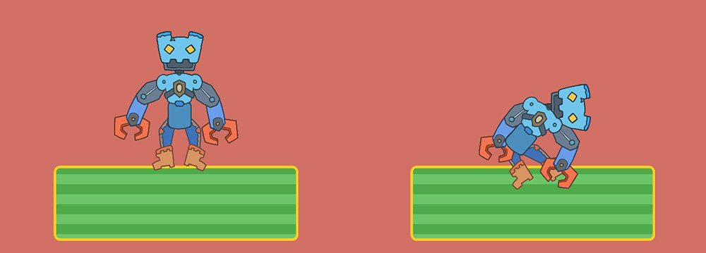 You'll see the robot character stop its animation and fall to the side, as shown above.