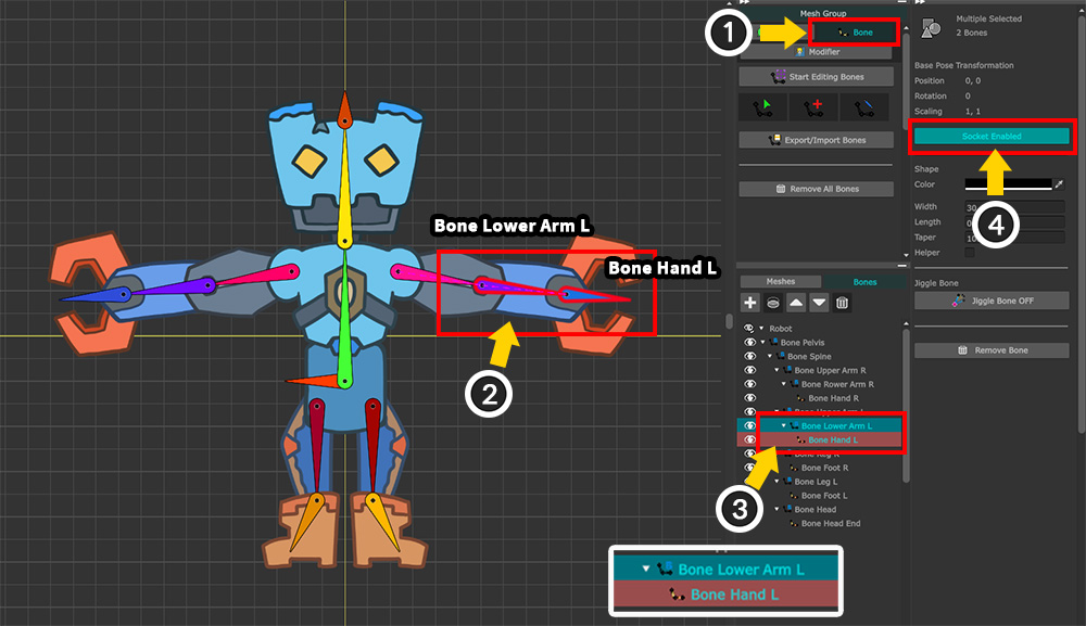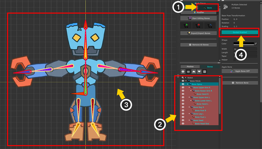 Therefore, we implemented a function that automatically finds all bones with the socket option enabled and enters their information.