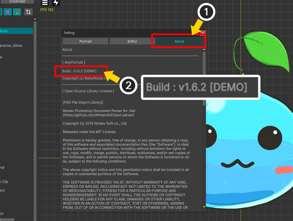 다른 버전의 AnyPortrait를 설치하기 전에, 현재 설치된 빌드 버전을 확인할 필요가 있습니다.