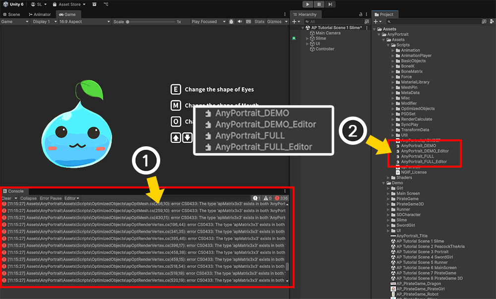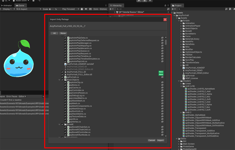 AnyPortrait 패키지를 가져오는 과정에서, 현재 버전과 맞지 않는 DLL 파일들을 삭제해야합니다.